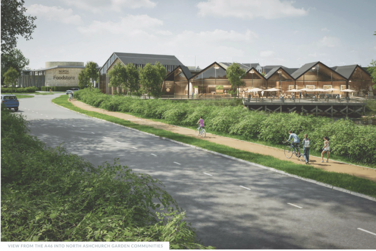 The North Ashchurch area relates to three of the six proposed Garden Communities. In addition to up to 2,800 homes, it proposes two local centres including community, employment, commercial, retail, leisure, health facilities and public open space; two primary schools; a secondary school; sports pitches; community gardens; a new pedestrian bridge over the railway; new accesses from Hardwick Bank Road, B4079 and A46; and a new spine road (Central Street) connecting the A46 to the east with Hardwick Bank Road to the west.